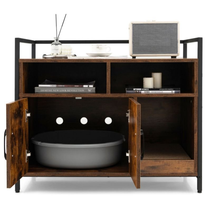 3.Safe and Stable Construction: Reinforced with a rust-proof painted metal frame, our industrial style cat cabinet has greater stability and can hold a total of 198 lbs of weight. And the adjustable feet on the bottom allow our cat cabinet to remain stable on uneven floors. What's more, the product features an anti-tip device to prevent the cabinet from tipping over and injuring your pet or child.