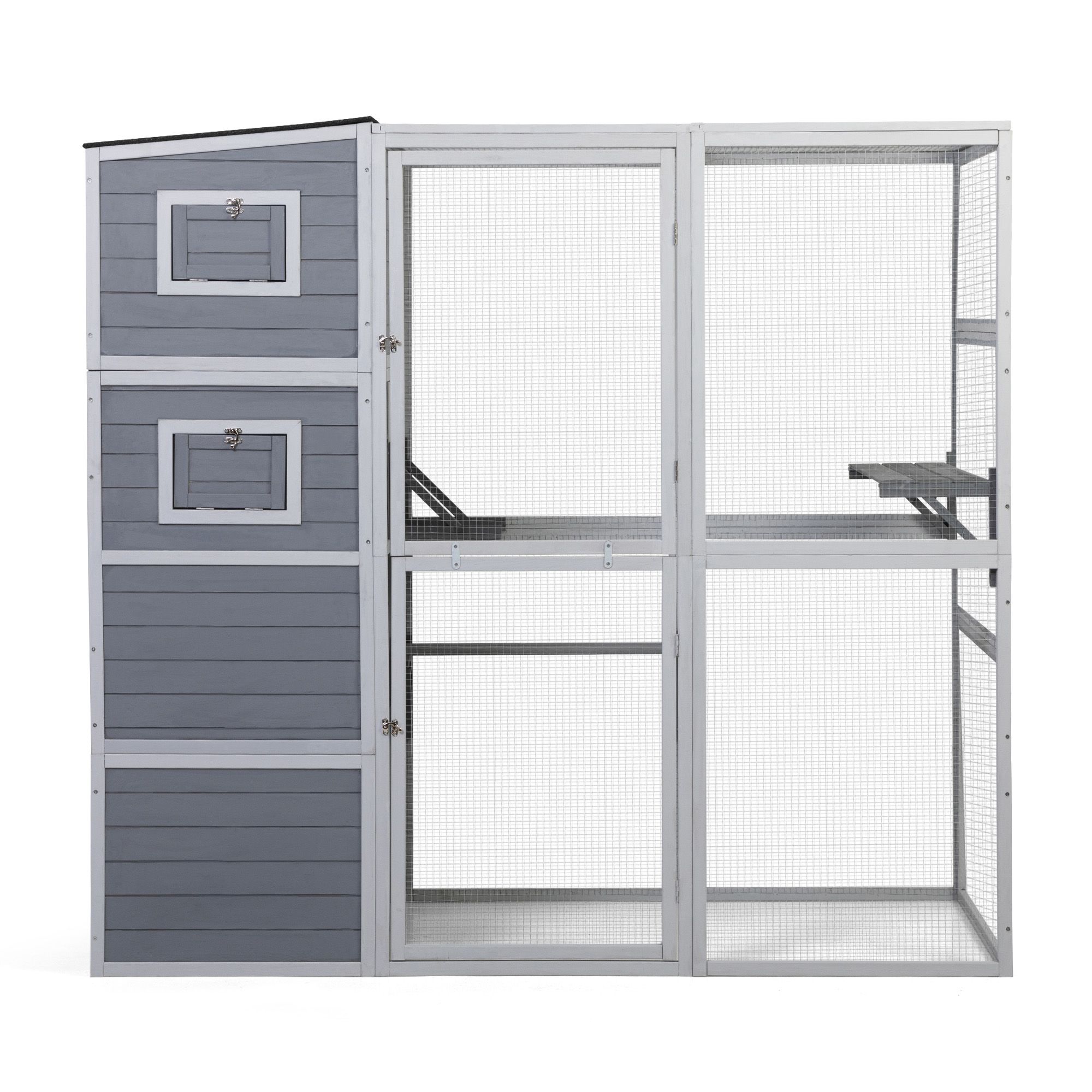 Large Wooden Cat Enclosure with Waterproof Roof and Platforms, Gray Large Wooden Cat Enclosure with Waterproof Roof and Platforms, Gray Large Wooden Cat Enclosure with Waterproof Roof and Platforms, Gray