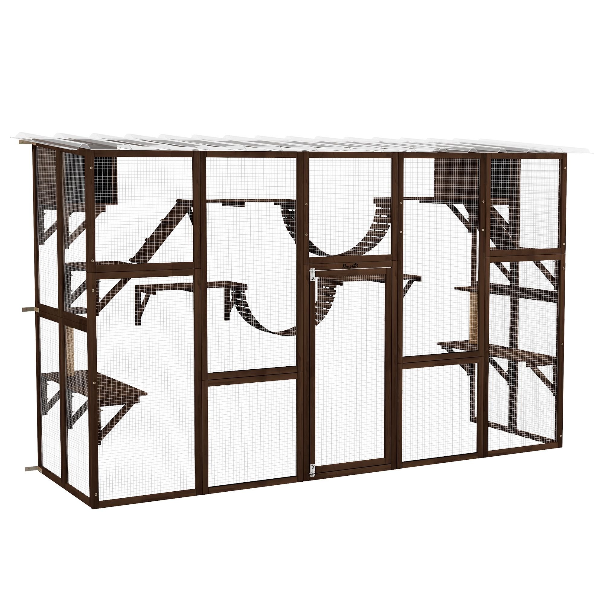 Give your cats a massive play space upgrade for outside. The high points of this outdoor cat enclosure are the numerous, with 5.1 ft. being the top-most place for them to sit. There's plenty of room for multiple furry friends to enjoy all their favorite things: from cozying up in a box, to being far from the ground, to running, climbing, and exploring, this PawHut design delivers tons of kitty favorites.