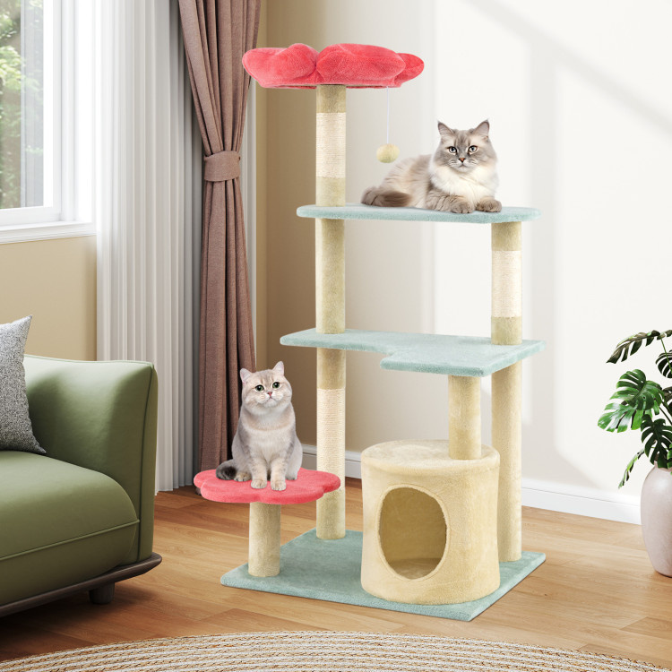3.Charming Floral Design: The top perch is intricately shaped like a delicate flower, complemented by refreshing hues and a flower-shaped platform. Not only is it a functional cat tower, but also an elegant piece of furniture to enhance the aesthetics of your home.
