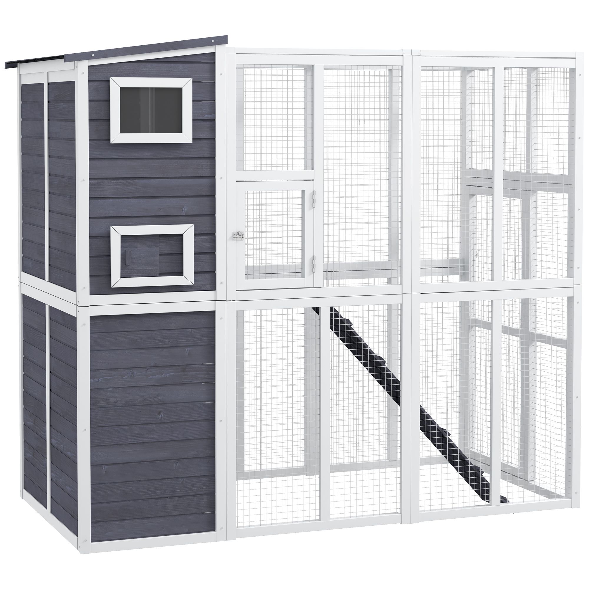 PawHut Wooden Outdoor Catio with Platforms, Asphalt Roof, Ramps, Light Gray PawHut Wooden Outdoor Catio with Platforms, Asphalt Roof, Ramps, Light Gray PawHut Wooden Outdoor Catio with Platforms, Asphalt Roof, Ramps, Light Gray